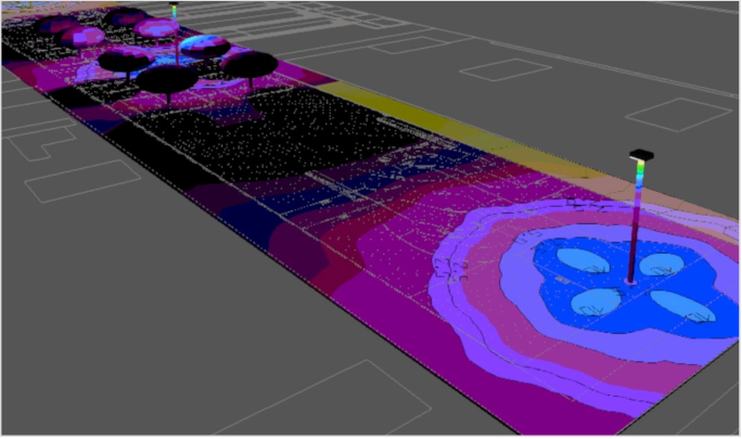 The location will determine the type of solar lighting column. Next step is to determine the quantity needed for a project to be illuminated accordingly. Therefore, we will focus on the lighting classifications and make a quick photometric study (in DIALux, conforming to EN13201:2015). Based on our luminaires Alexia and Anne, we will determine the most effective intermediate distance of the columns and the most economic lighting design for our (potential) customer.